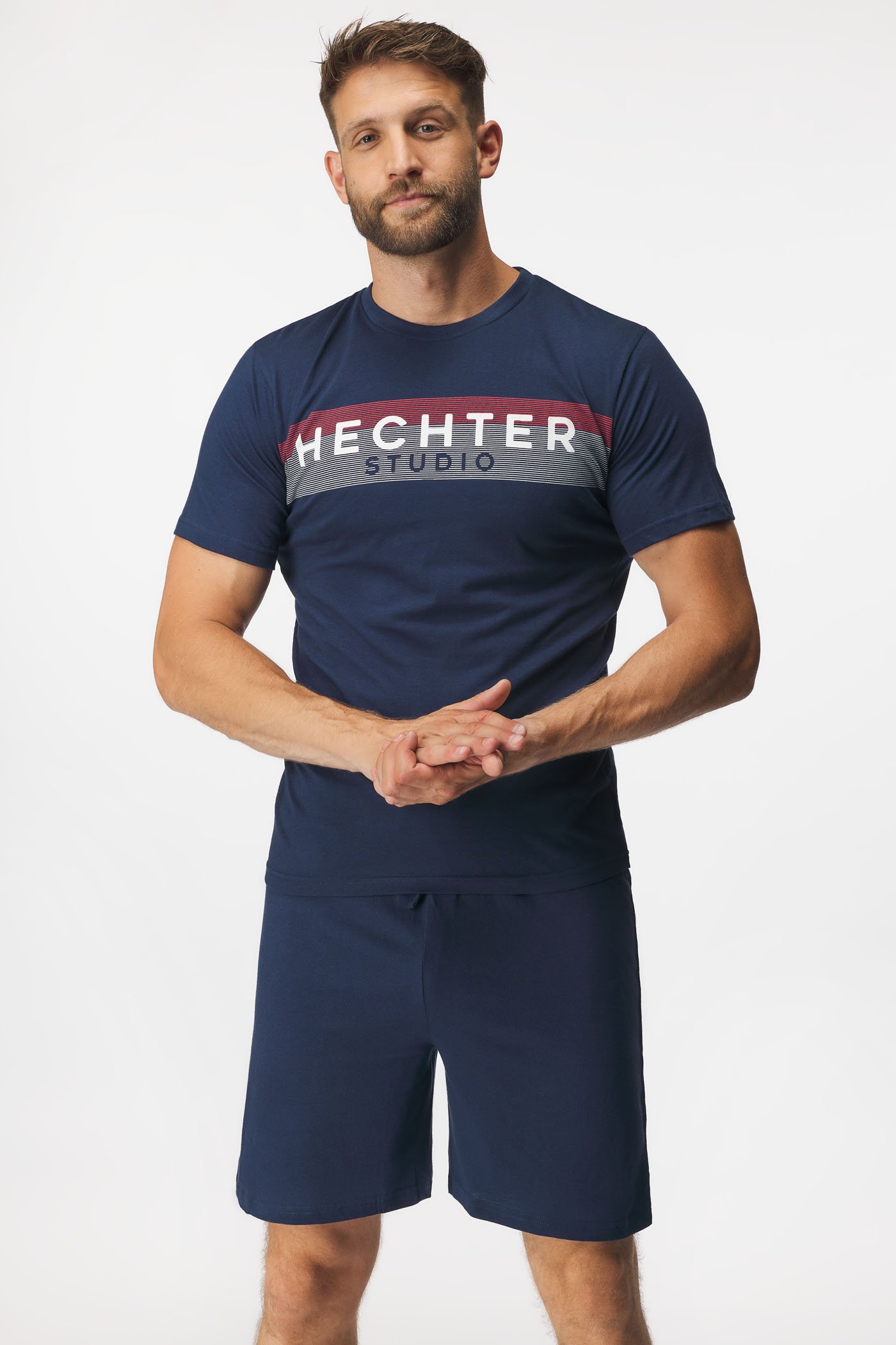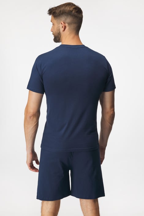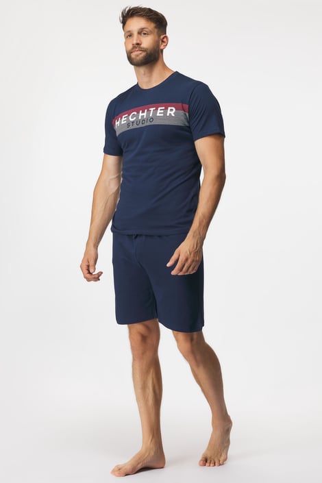 Pijama pentru bărbați From cu imprimeu pe piept. Tricoul este completat de pantaloni scurți cu elastic în talie. Din tricot plăcut de bumbac.