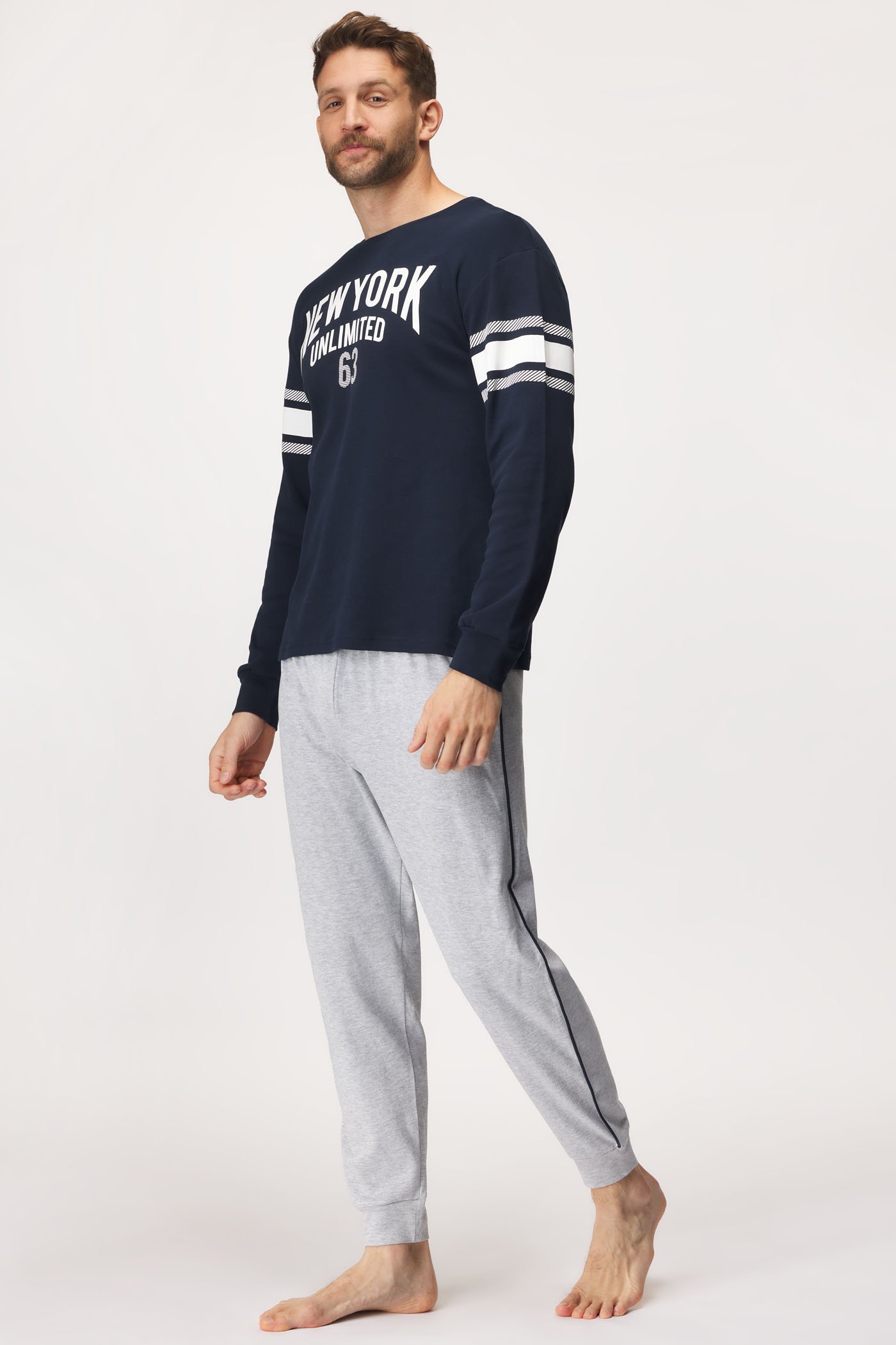 Pijamaua din bumbac pentru bărbați New York este alegerea ideală pentru confortul tău pe timp de noapte. Este confecționată dintr-un tricot de bumbac moale, cu o croială mai lejeră pentru un plus de confort.