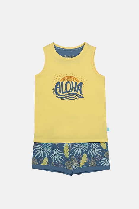 Pijama Aloha Palms, cu model vesel de vară, este excelentă pentru fetele cărora le plac culorile și modelele puternice. Confecţionată din tricot moale din bumbac, care asigură un somn confortabil.