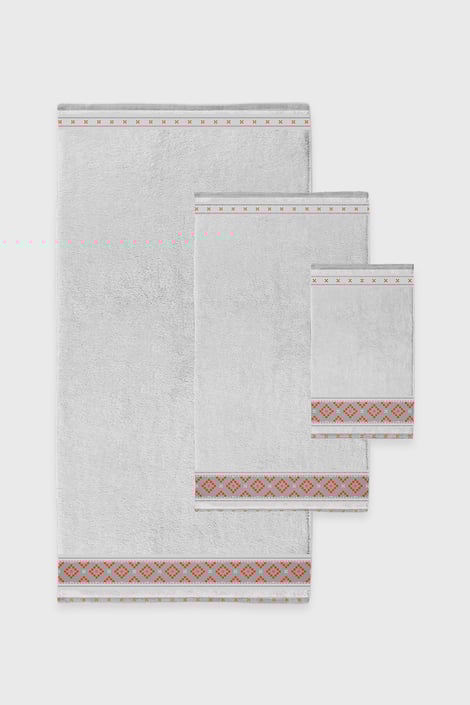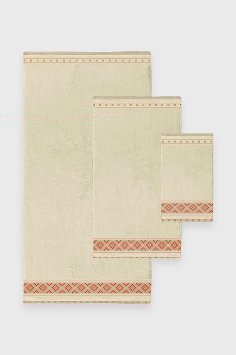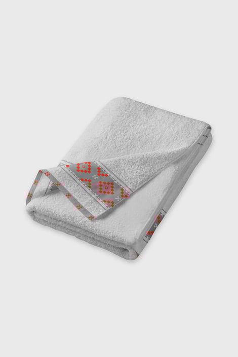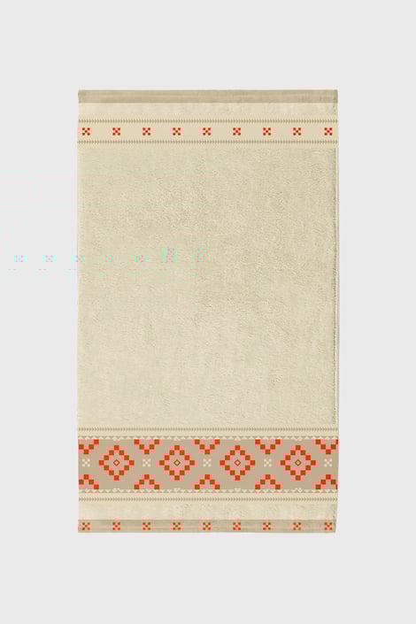 Prosop Folklore fabricat din bumbac 100% absorbant. Cu margine cu model decorativ.