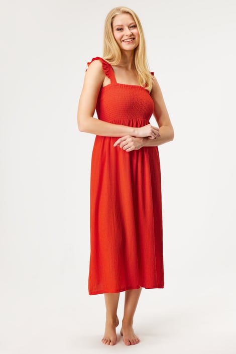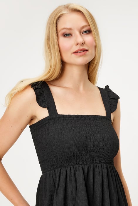 Rochia Pieces PCLuna este piesa ideală pentru vară. Cu material drapat în zona sânilor, care se adaptează frumos la siluetă. Bretelele sunt decorate cu volănașe. Croială lejeră și confortabilă pentru o senzație de confort absolut.