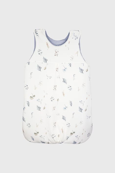 Sacul de dormit pentru bebeluși Lama va fi apreciat de fiecare mămică. Este confecționat din bumbac organic și decorat cu motive de flori și frunze. În interior cu muselină albastră monocromă. Are o închidere practică cu capse în zona umerilor și fermoar pe o parte.