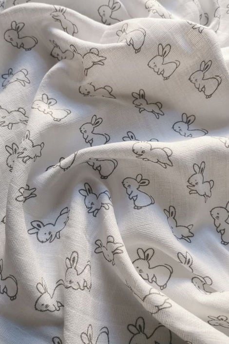 Scutec practic pentru bebeluși confecționat din bumbac 100%. Cu un model drăguț de iepuraș.