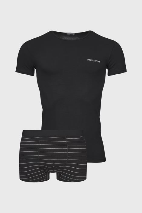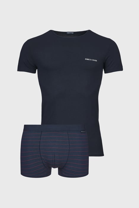 Set cu tricou și boxeri Samuel din tricot moale de bumbac pentru confortul tău. Tricou basic este decorat de un imprimeu discret, iar boxerii sunt cu dungi contrastante.