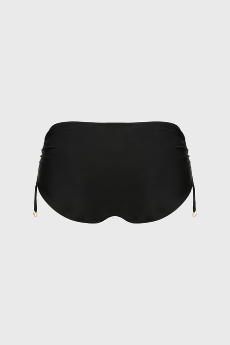 Slip de la costumul de baie Adel V cu design elegant în nuanță neagră cu dungă aurie. Cu șnururi pe părțile laterale, cu care se poate ajusta înălțimea decupajului.