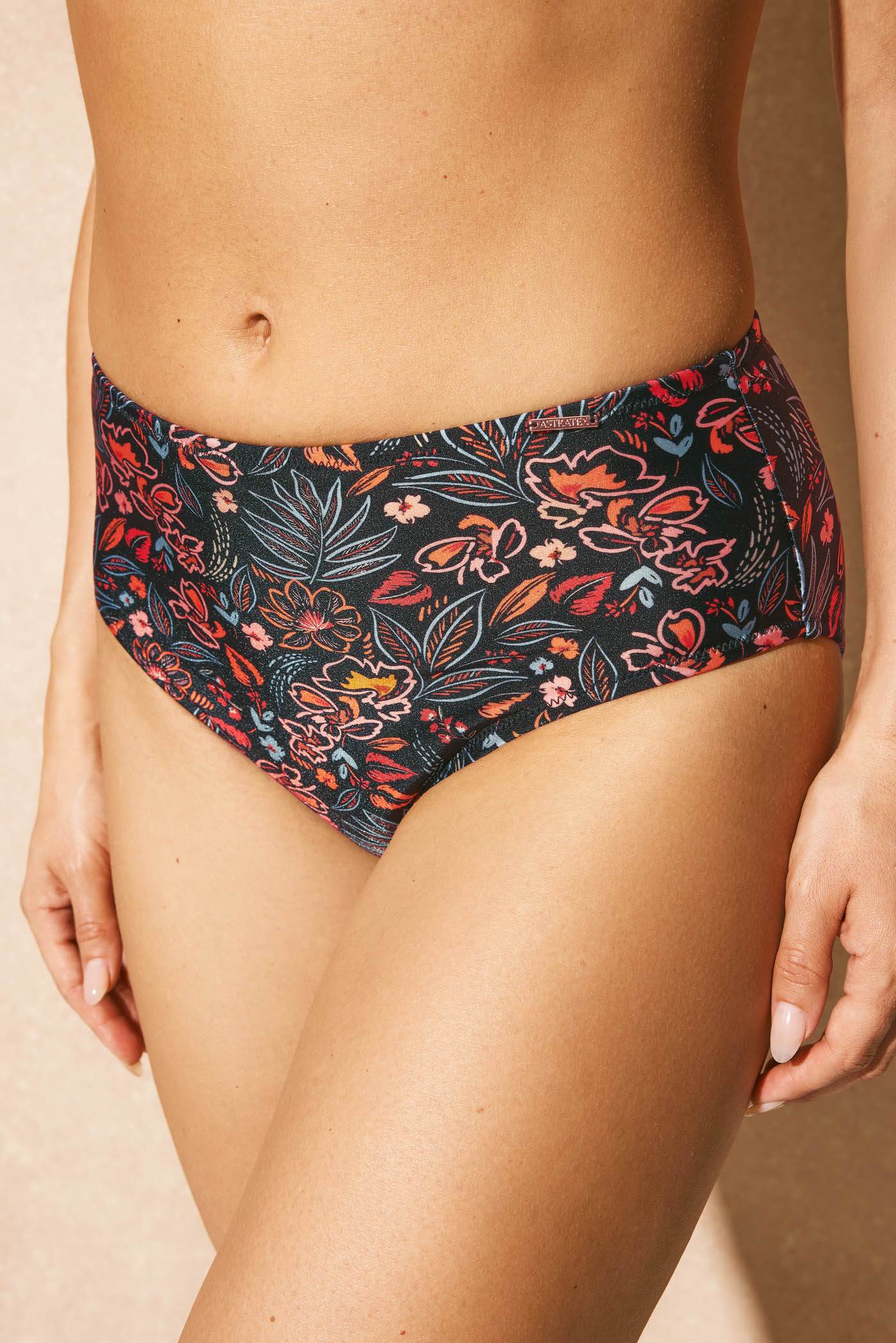 Slip costum de baie Anaya cu imprimeu colorat. Croiala clasică nu jenează, talia înaltă îmbrațișează usor abdomenul. Din atelierul specialiștilor Astratex.
