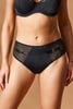 Slip de la costumul de baie Lia II este o piesă elegantă pentru forme voluptoase. Croiala clasică este decorată pe părțile laterale de plasă transparentă, completată cu benzi cu aplicații aurii. Din atelierul Astratex.