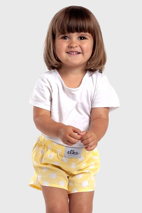 Șort pentru copii ELKA LOUNGE model decorat cu buline. Șortul este confecționat din bumbac satinat moale, foarte plăcut pe piele. Excelent pe post de pijama dar și ca și parte a ținutei de casă.