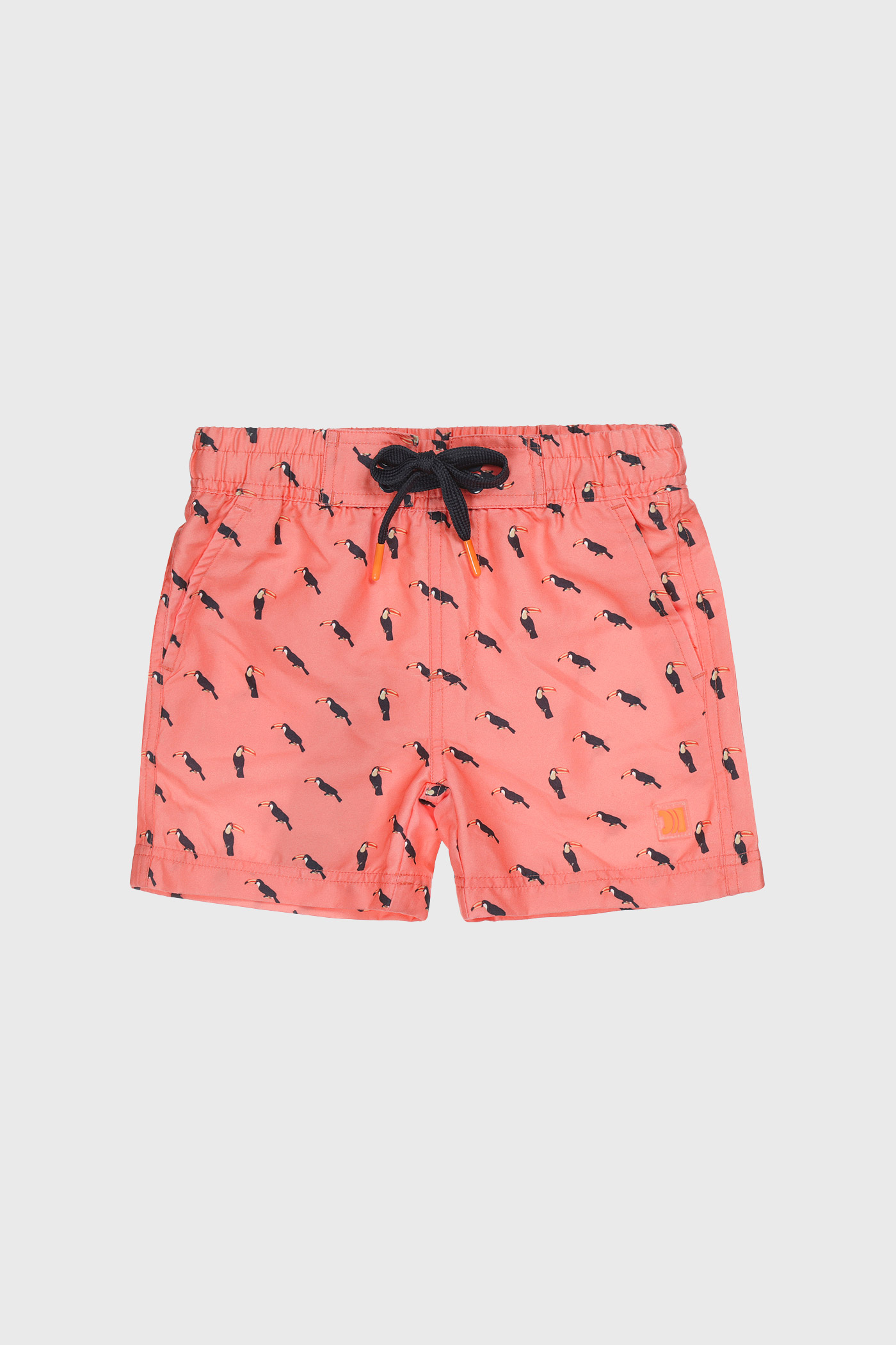 Şort de baie pentru băieți Parrot cu mici motive de papagali. Confecţionat din material cu proprietăţi de uscare rapidă.