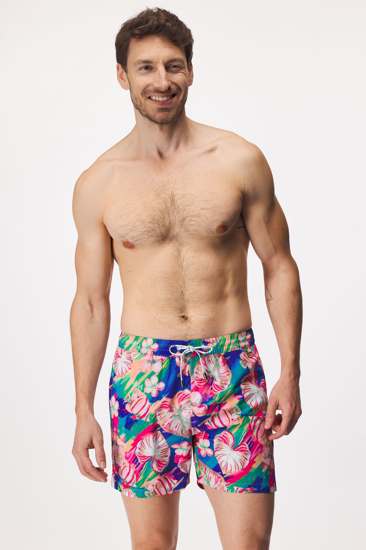 Șort de baie David 52 Pisces pentru plajă sau la o plimbare în oraș. În design floral colorat.