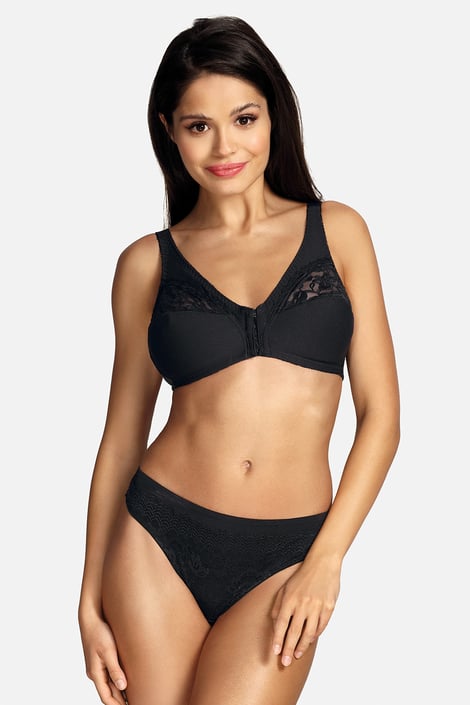 Sutienul Alison este excelent pentru femeile cu un bust generos, fiind foarte confortabil. Cupele neîntărite sunt confecționate din material elastic și dantelă decorată cu model floral. Design fără balene. Excelent și pentru a fi purtat acasă. Se închide în față, între sâni.