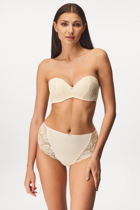 Sutienul Amelia tip bardot asigură un decolteu extrem de frumos. Cupele moi se adaptează perfect la sâni, le ridică și rotunjesc ușor. Datorită bretelelor detașabile, poți purta sutienul și sub rochii cu umerii goi.
