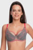 Sutienul ușor Asteria are cupele din tul și dantelă și îți oferă susținere și o senzație de feminitate. Combinația de gri și roz este foarte delicată.