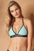 Sutien bikini Karl Lagerfeld Kenley în croială și design sport. Cupele triunghiulare au pernițe moi, care modelează ușor decolteul. Elastic lat sub sâni cu logo-ul mărcii.