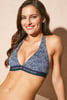 Sutien bikini Halter RP Print de la brandul premium Tommy Hilfiger cu imprimeu ornamental. Popularele cupe triunghiulare sunt echipate cu pernițe detașabile pentru a modela bustul. Decolteul este accentuat și mai mult de centrul jos și de bretelele legate după gât. Circumferinta este realizata din elastic mai lat cu sigla brandului.