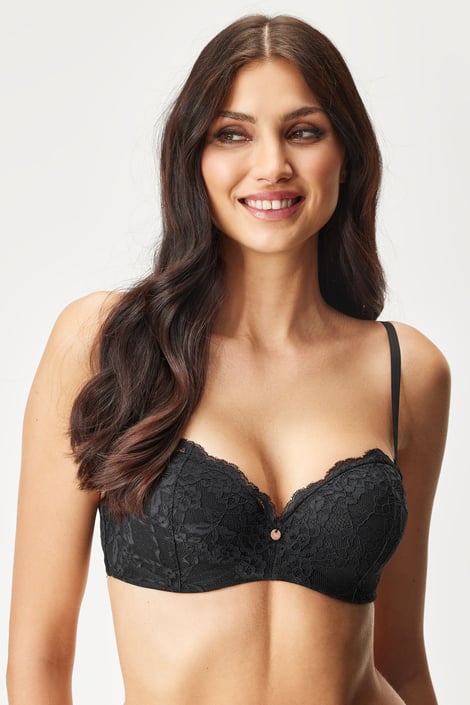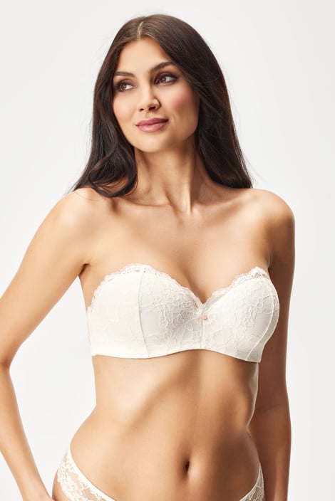 Sutien Blanche în croială bardot îți învăluie decolteul în dantelă delicată. Circumferința se închide în mod neobișnuit pe lateral. Partea din spate a circumferinței are o bandă de silicon pe interior, datorită căreia sutienul va rămâne pe loc chiar și după îndepărtarea bretelelor.