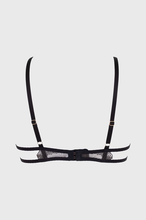 Sutien Bluebella Adeline din tul moale de culoarea pielii, brodat cu negru contrastant. Cupele transparente sunt completate de bretele strappy și elemente metalice aurii.