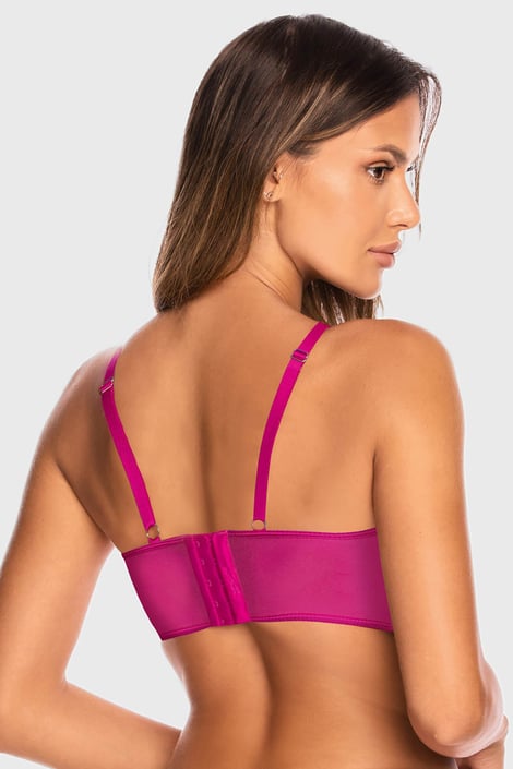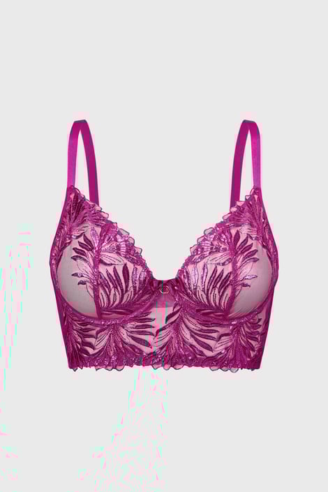 Sutienul Brilliance Hot Pink I de tip corset este o piesă impresionantă de lenjerie intimă. Cupele neintarite din tul fin cu efect metalic sunt decorate cu broderii florale strălucitoare, bretelele sunt realizate din satin lucioas. Decent translucid pe circumferință.