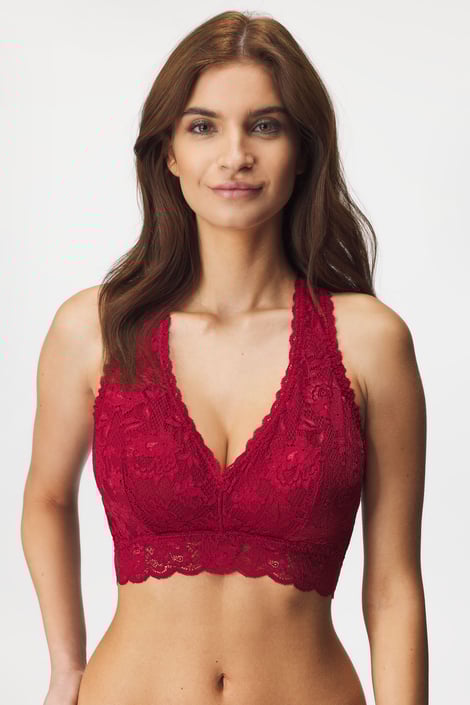 Sutienul elegant tip bralette Cosabella Never Sindoor este perfect și pentru sâni mari. Dantela florală bogată este căptușită cu plasă fină, care este extrem de plăcută pe corp. Cupele sunt neîntărite și fără balene. Bretelele sunt unite la spate între omoplați, conferind astfel o susținere mai mare.
