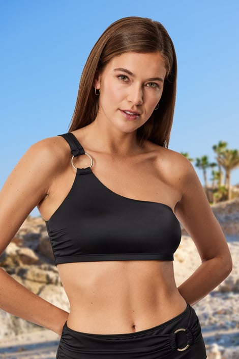 Sutien de la costumul de baie Azores Eco II într-o croială trendy asimetrică. Cupele fără balene au pernițe detașabile, care ajută la modelarea sânilor.