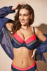 Vei fi de neuitat în sutienul de baie Nautica Glow cu decolteu contrastant. Cupele întărite vor oferi sânilor mai mari forma perfectă, iar întăritura cu efect Push-Up va ajuta sânii mai mici să obțină un volum mai plin. Conceput de specialiștii Astratex dintr-un material special rezistent la radiațiile UV, clor și creme de protecție solară.