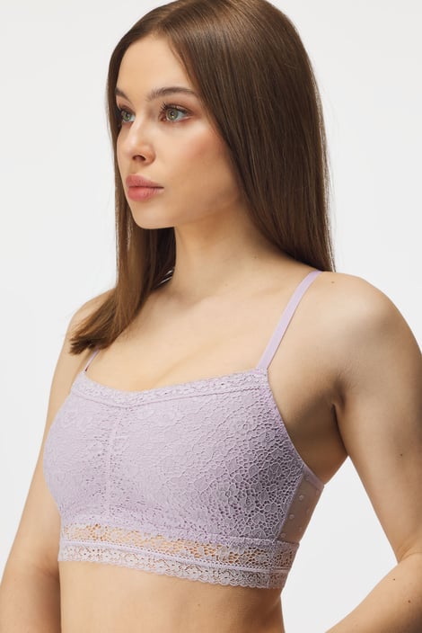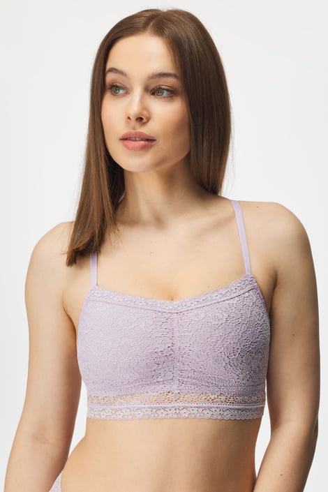 Sutien dantelat Dania oferă sânilor libertate absolută. Partea din față este căptușită cu microfibră delicată, iar cea din spate este din plasă transparentă cu buline. Model fără balene.