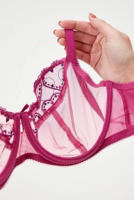 Sutienul fneîntărit Freya Laurine va oferi sânilor confort. Balenele oferă susținere, cupele în formă de T vor rotunji sânii în mod natural. Partea din față este confecționată din tul fin cu broderie în zona decolteului, iar partea din spate este din plasă. Centrul este decorat cu o fundiță și o inimă aurie.