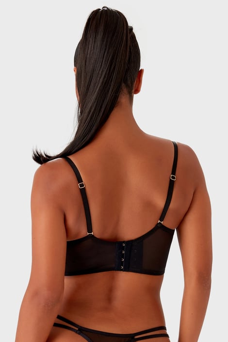 Sutien tip corset Gossard VIP Captivate este o piesă senzuală pentru decolteul tău. Cupele ușor întărite în culoarea pielii sunt acoperite de tul negru fin cu broderie strălucitoare, care conferă modelului eleganță. Linia bustului este evidențiată de benzi strappy de efect.