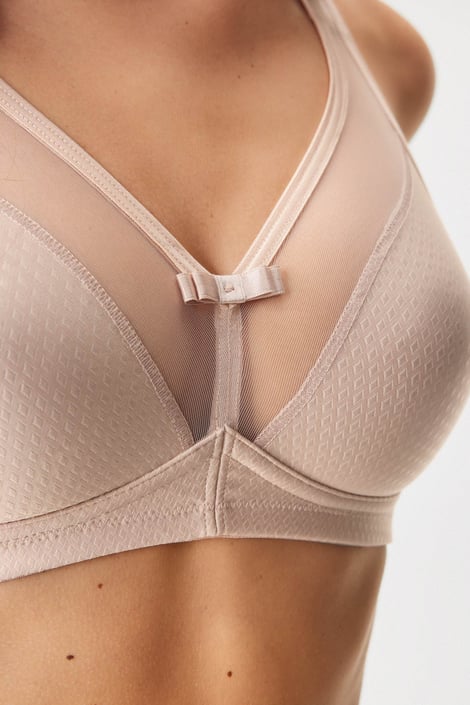 Sutien neîntărit fără balene, care combină în mod ingenios microfibra cu motiv fin cu tul delicat. Tivurile elastice ale cupelor se modelează frumos și împreună cu bretelele late asigură confortul pe durata întregii zile.