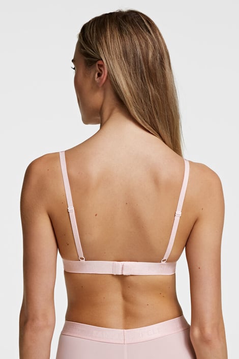 Sutien uşor tip bralette de la brandul iconic Karl Lagerfeld. Cupele triunghiulare sunt dintr-o combinaţie de tul moale și dantelă florală, iar circumferința este formată de un elastic lat cu logo-ul mărcii.