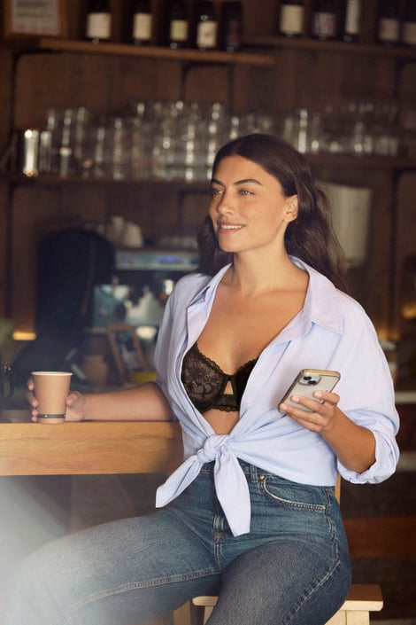 Sutienul elegant și senzual Kikky Curves le va încânta chiar și pe doamnele cu sâni mari. Balenele susțin sânii în mod fiabil, în timp ce cupele din dantelă îi modelează. Panourile laterale ușor căptușite îi direcționează spre centru, unde creează un decolteu frumos și plin. Dantela este căptușită cu plasă fină, iar spatele este decorat cu benzi strappy.