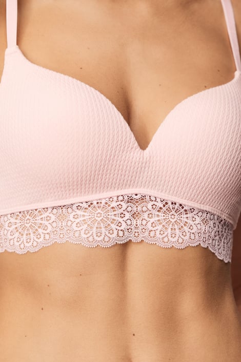 Sutien fără cusături Lottie, realizat din materiale sustenabile. Cupele sunt extrem de moi și, datorită designului fără balene, sunt foarte confortabile. Circumferința este decorată cu dantelă ușoară.