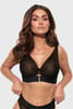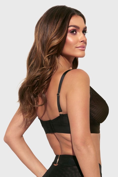 Sutienul rafinat Lou Light îți va învălui sânii în tul negru cu dungi brodate. Cupele sunt neîntărite, cu balene și croială triunghiulară, care susține frumos chiar și sânii mari. Circumferința este formată dintr-o bandă elastică mai lată, cu o cataramă aurie în față.