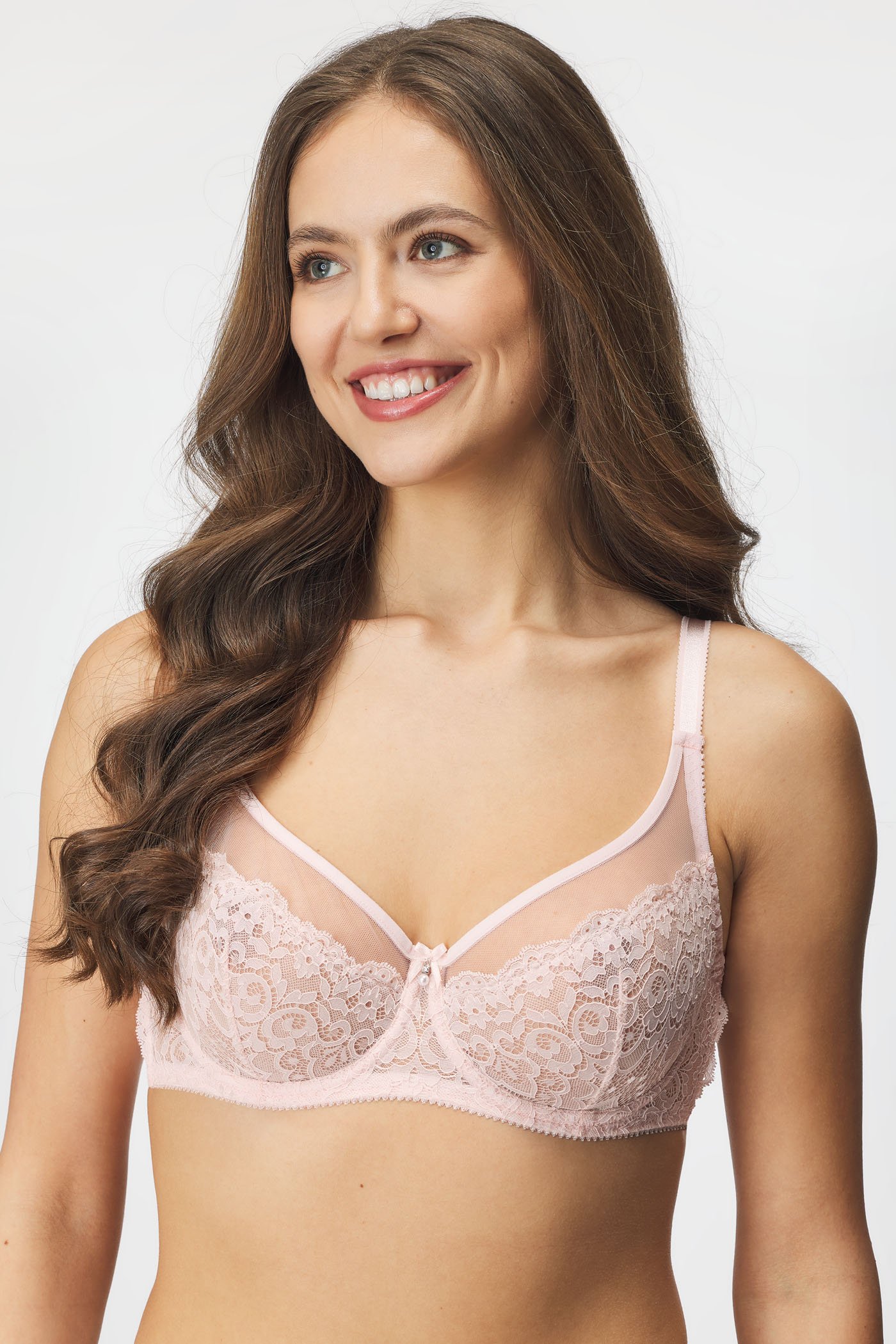 Sutienul Magnolia fără pernuțe oferă un decolteu complet natural. Cupele din plasă moale sunt acoperite cu dantelă bogată, care iese în evidență frumos datorită broderiei florale delicate. Cu bretele strălucitoare din satin.