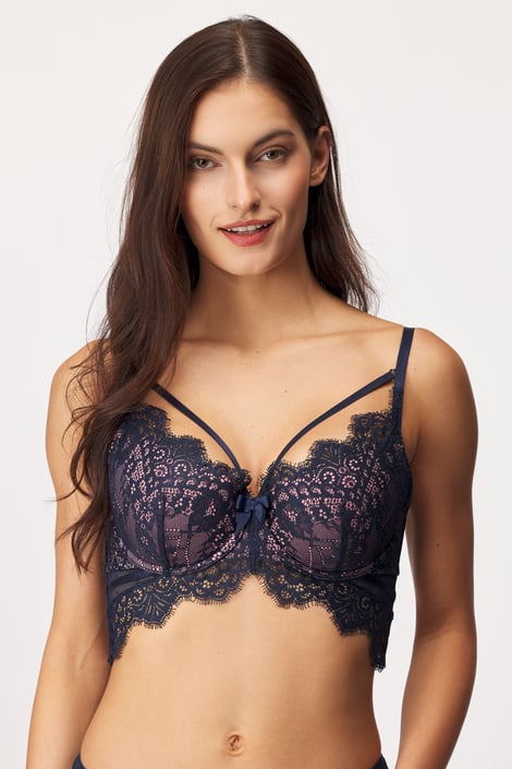 Oferă-ți o notă de rafinament elegant cu sutienul Marilee Blue. Cupele ușor întărite sunt acoperite cu dantelă contrastantă, care iese frumos în evidență pe fundalul roz al cupelor. Poți accentua decolteul cu benzi strappy fanteziste.