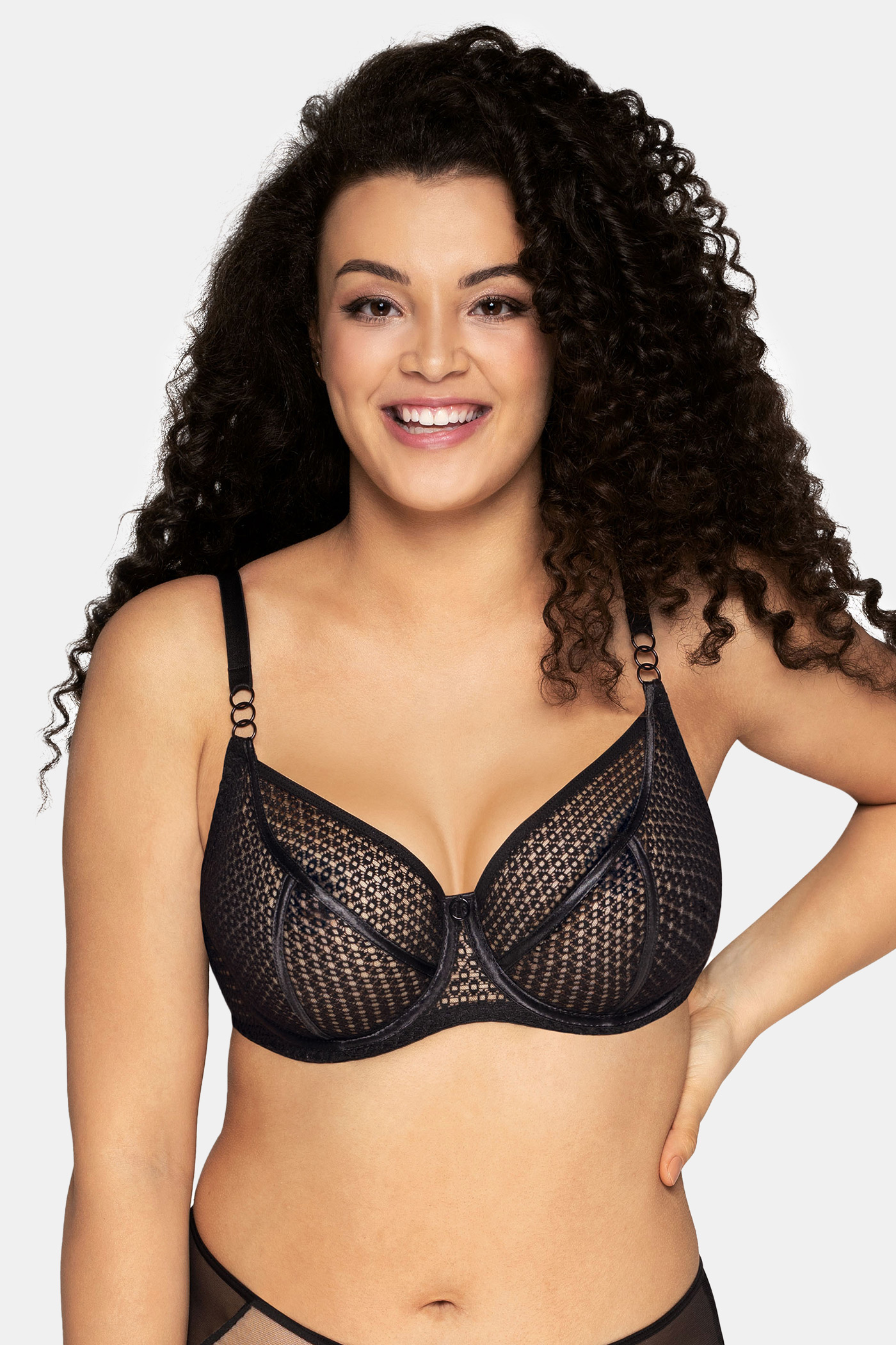 Sutienul neîntărit Illusion a fost conceput pentru femeile cu sâni voluptoși. Cupele în populara formă de T oferă un aspect rotund frumos. Suportul necesar este asigurat de un centru înalt și balene clasice. Sutienul este decorat cu dantelă cu un model neobișnuit.