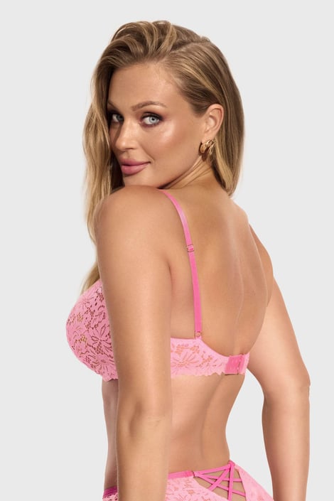 Sutienul Nel din dantelă este o alegere delicată, senzuala, dar și practică pentru un bust mai plin. Cupele neîntărite modelează frumos sânii în mod natural, întăritura de pe laterale ajută la direcționarea lor spre centru. Căptușit cu plasă.