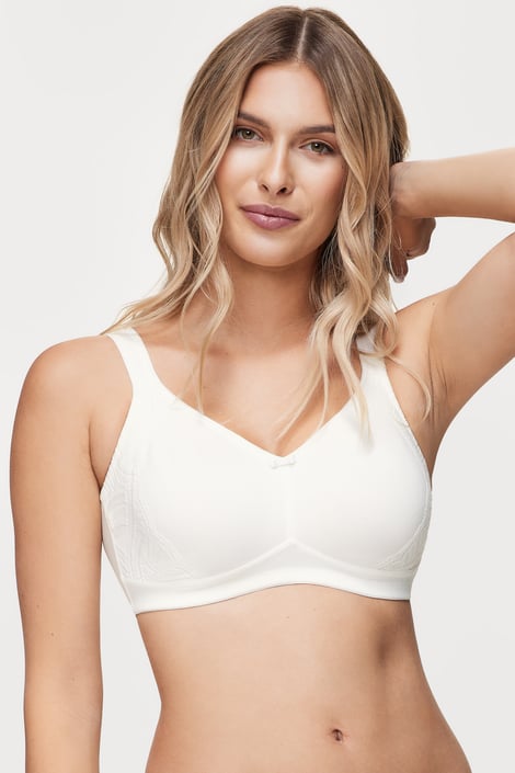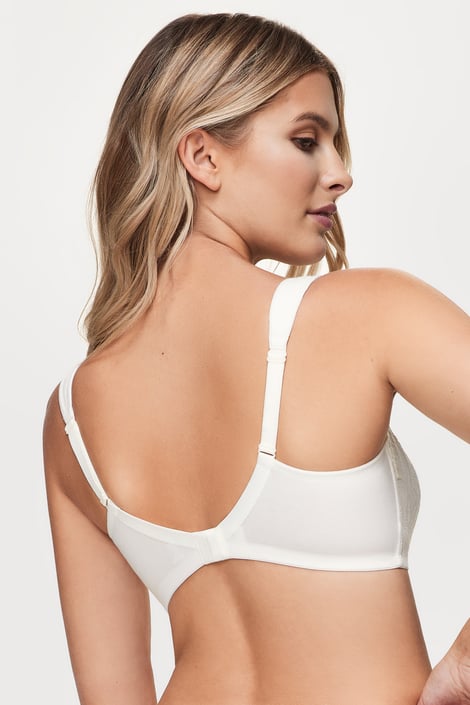 Sutien Nizza, din bumbac, cu efect optic de micșorare a bustului. Acesta nu deține balene fiind foarte confortabil. Cupele ferme sunt decorate în părțile laterale cu dantelă moale, bretelele sunt late și fin căptușite.