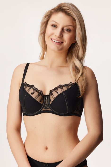 Sutienul semi-întărit Penelope modelează frumos decolteul. Cupele în formă de T rotunjesc sânii în mod natural. Aspectul elegant este creat de dantela impresionantă.
