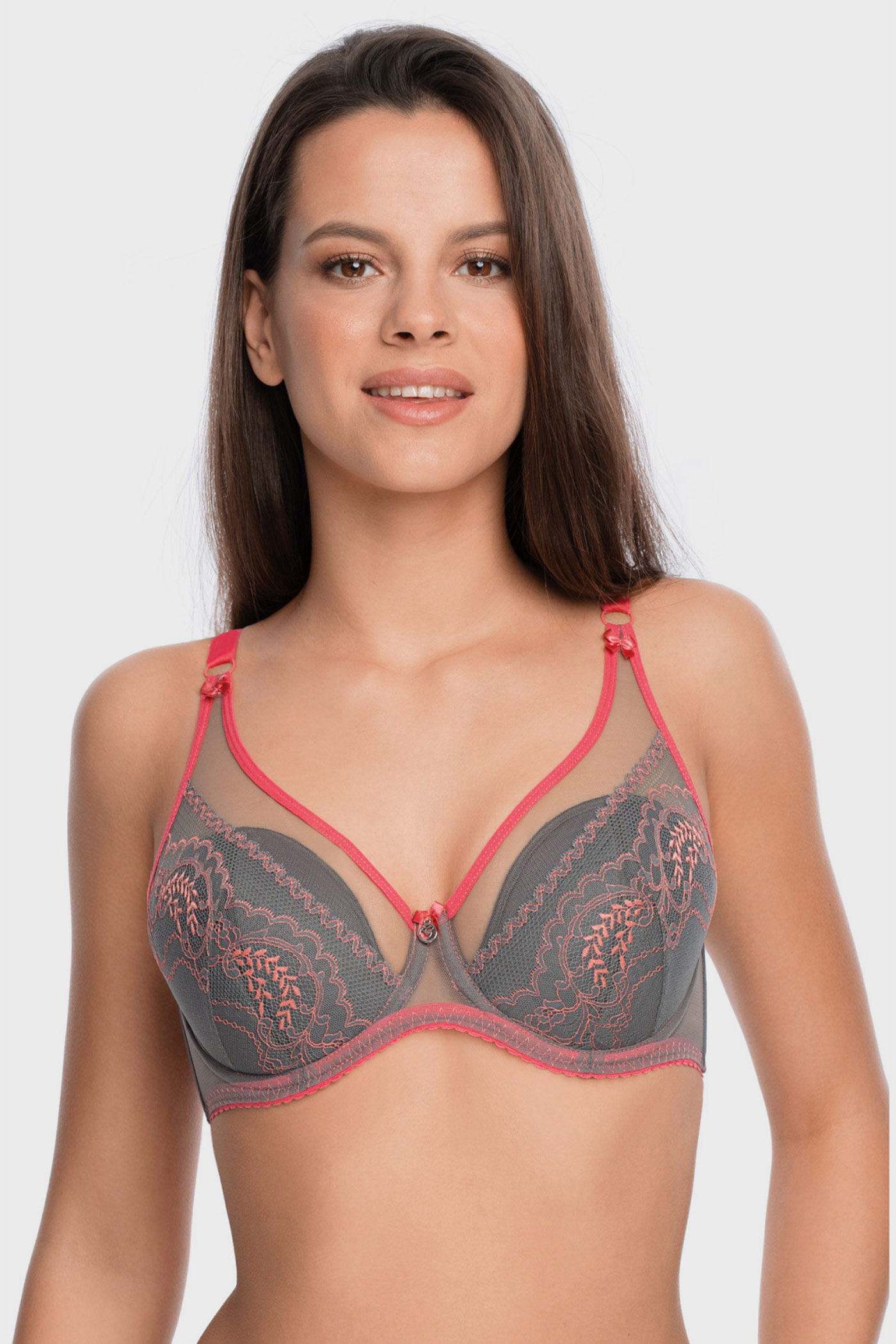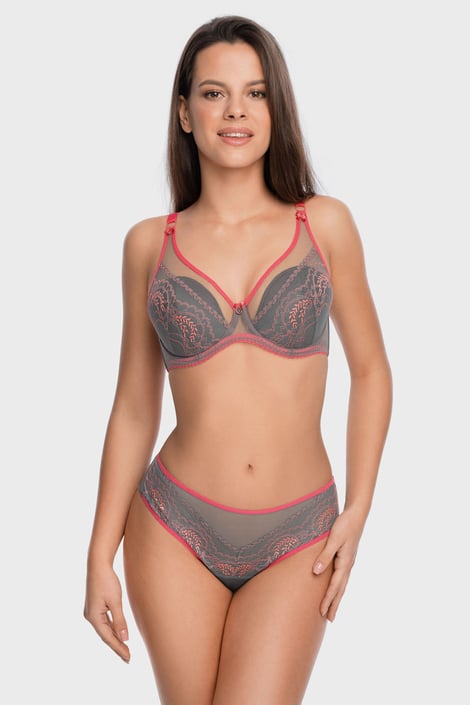 Sutienul semi-întărit Reja se caracterizează prin combinația dintre dantelă, tul fin și contrast subtil de culori. Cupele ascund pernițe detașabile pentru adăugare de volum.
