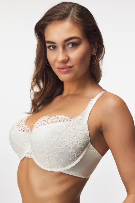 Sutien întărit Rosalia potrivit pentru femei cu sânii mai mici și mai mari. Cupele moi sunt acoperite cu dantelă florală bogată, care decorează și bretelele. Circumferința netedă din microfibră se va adapta ușor la corp.