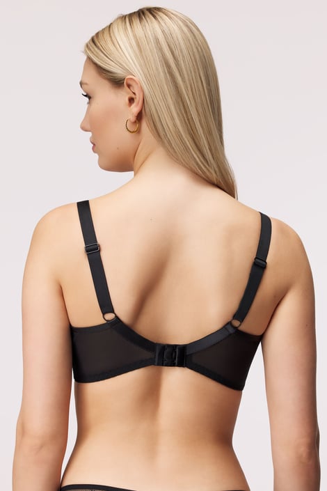 Sutienul Sara ajută la mascarea micilor imperfecțiuni ale decolteului. Cupele neîntărite sunt realizate din tul de culoarea pielii, acoperit cu dantelă florală bogată. Cu imitație de bretele strappy.