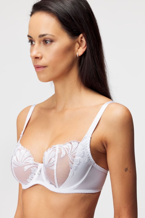 Sutienul tip bardot Scent Of Love din dantelă ușoară subliniază perfect sânii. Cupele cu croiala joasă și cu o cusătură verticală și centrul ușor mai înalt oferă sânilor susținerea perfectă și o formă complet naturală. Bretele cu o strălucire satinată.