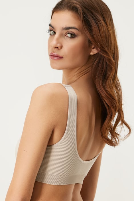 Sutien sport ONLY Aniya pentru confortul tău acasă sau în timpul activităților ușoare. Materialul cu striații fine este căptușit cu tricot fin, care este extrem de plăcut pe corp. Cupele au pernițe detașabile.