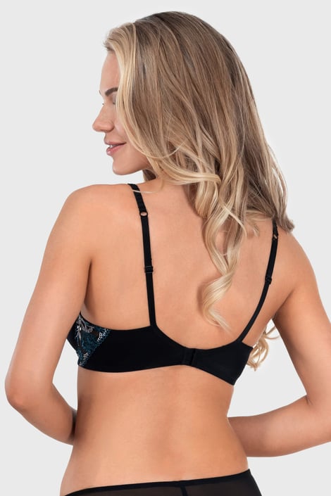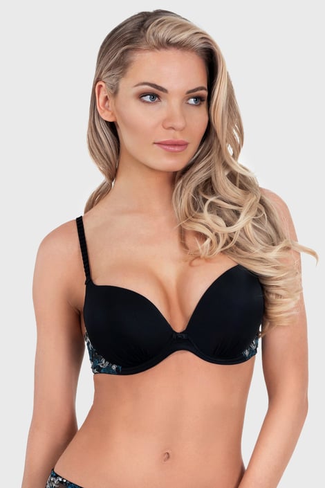 Sutienul Tera cu efect Push-Up conferă un decolteu plin. Pernițele Push-up ridică ușor sânii. Cupele netede sunt ideale pe sub îmbrăcămintea mulată. Părțile laterale decorate cu broderii florale.