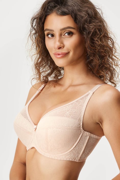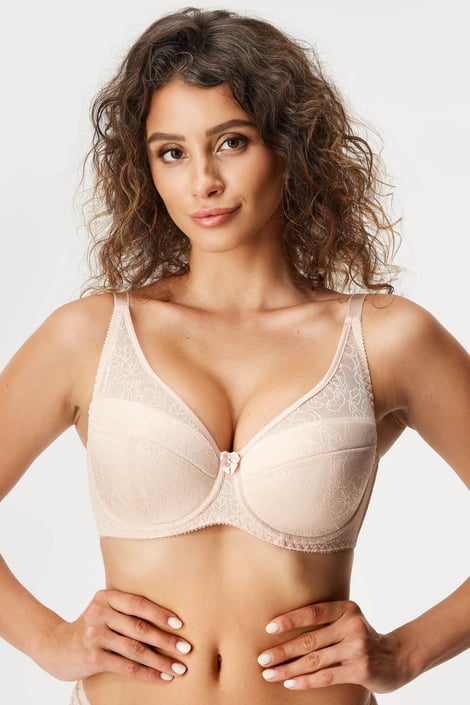 Sutienul întărit Trium este o piesă elegantă pentru sâni mari sau mici. Cupele sunt moi, modelează ușor sânii, iar croiala flatantă în T conferă sânilor formă rotundă superbă. Plasa fină cu motive florale delicate acoperă cupele și continuă până la bretele lucioase.