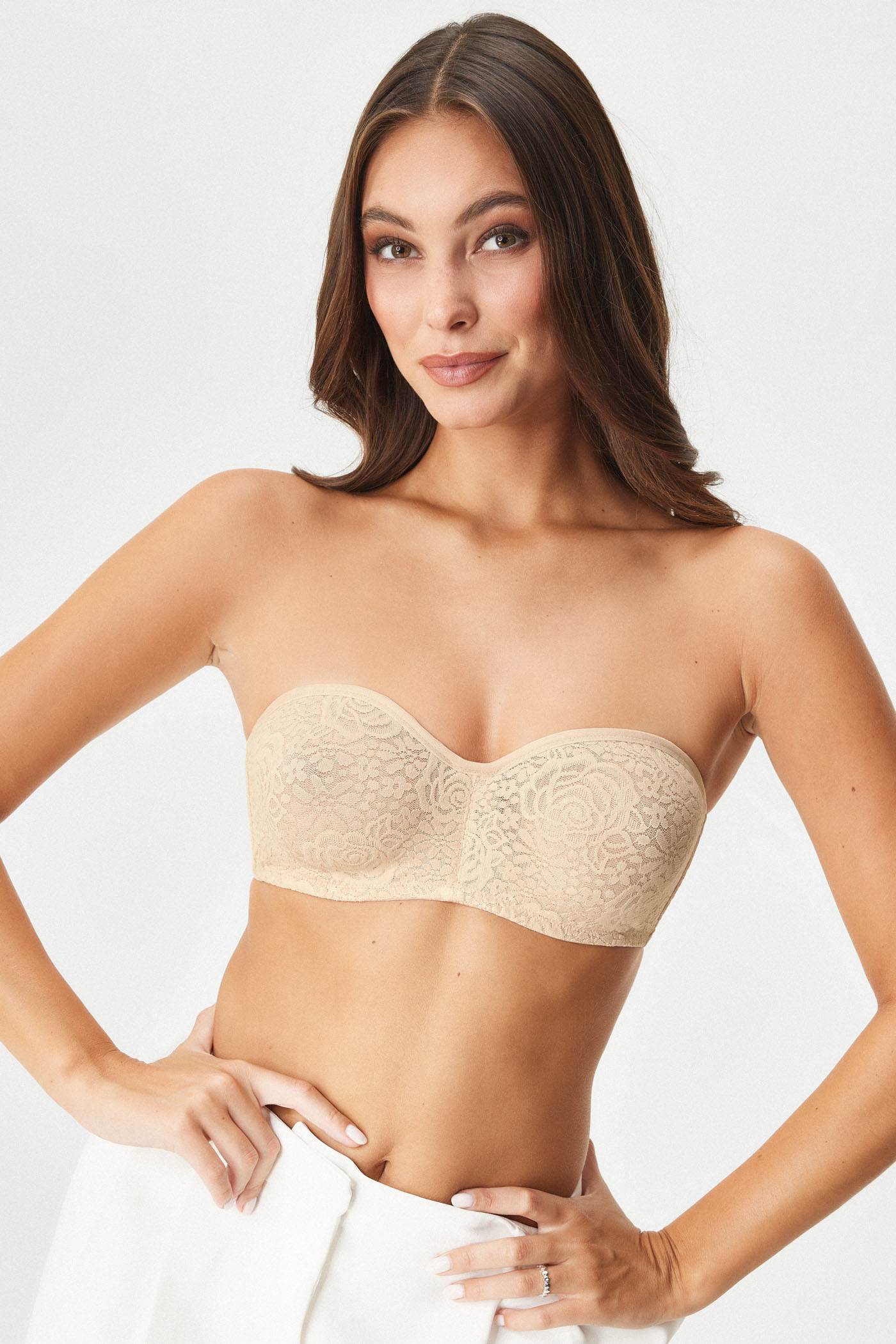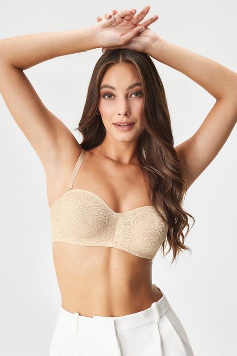 Sutien Wacoal Halo Lace Strapless pentru femei cu sânii mici. Cupele sunt acoperite cu dantelă florală delicată. Agățătoarele de la bretele se fixează în orificiile perforate din tivul superior al cupelor și al circumferinței, permițând ajustarea lor la nevoile tale exacte Bretelele pot fi detașate complet pentru a dezvălui umerii. Datorită benzii din silicon, sutienul va rămâne la locul lui.