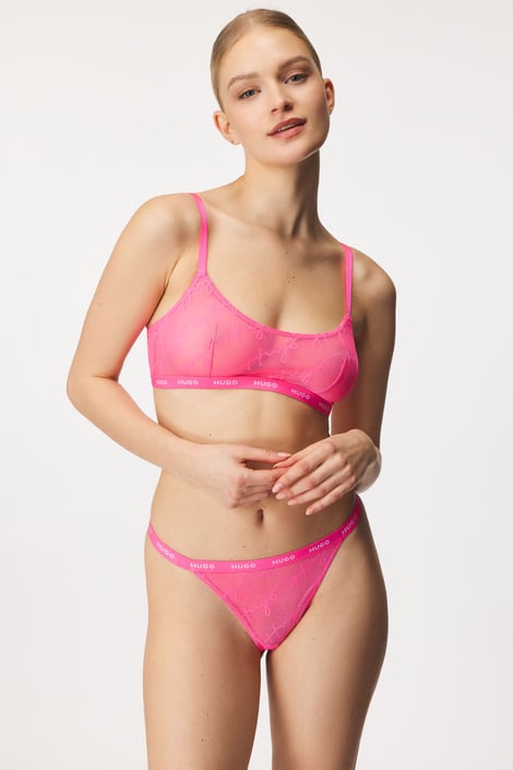 Hugo Chiloți tanga din plasă transparentă roz. Bandă elastică în talie cu logo-ul mărcii premium.