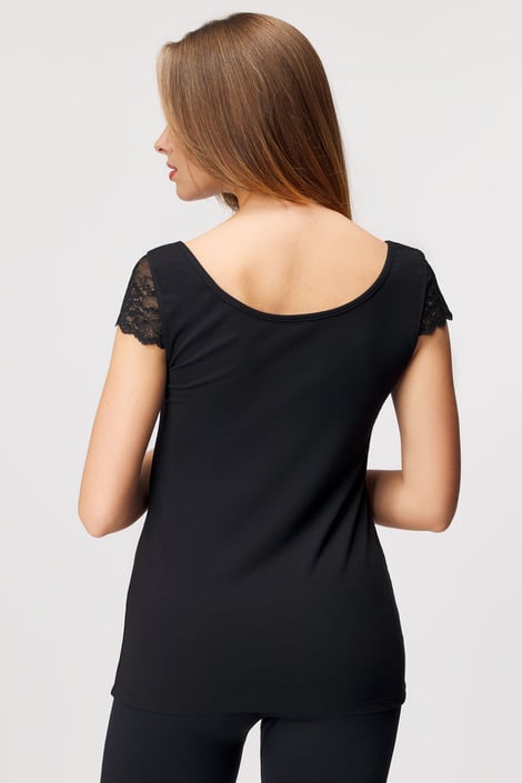 Dacă îți plac piesele discrete și elegante, vei adora tricoul de damă Mezza. Confecționat din tricot din bumbac moale, cu mâneci din dantelă ușoară.