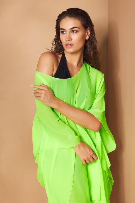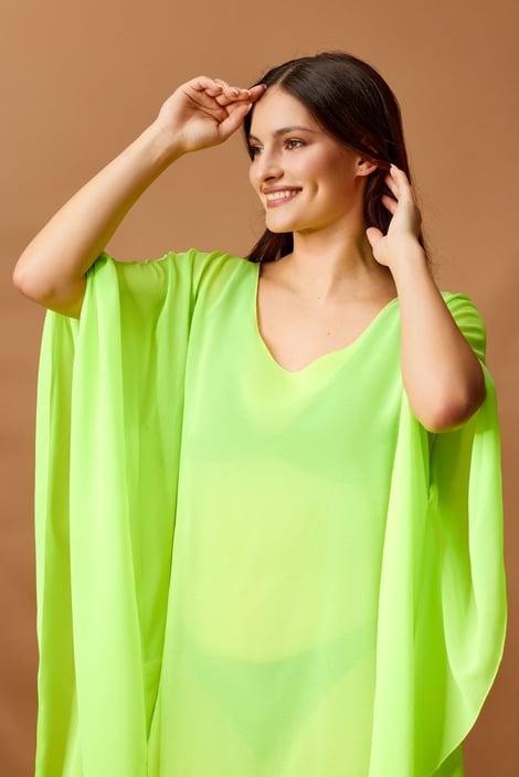 Tunică de plajă aerisită Mulan din material ușor lucios, care te protejează de razele soarelui. Croiala lejeră asigură confort.
